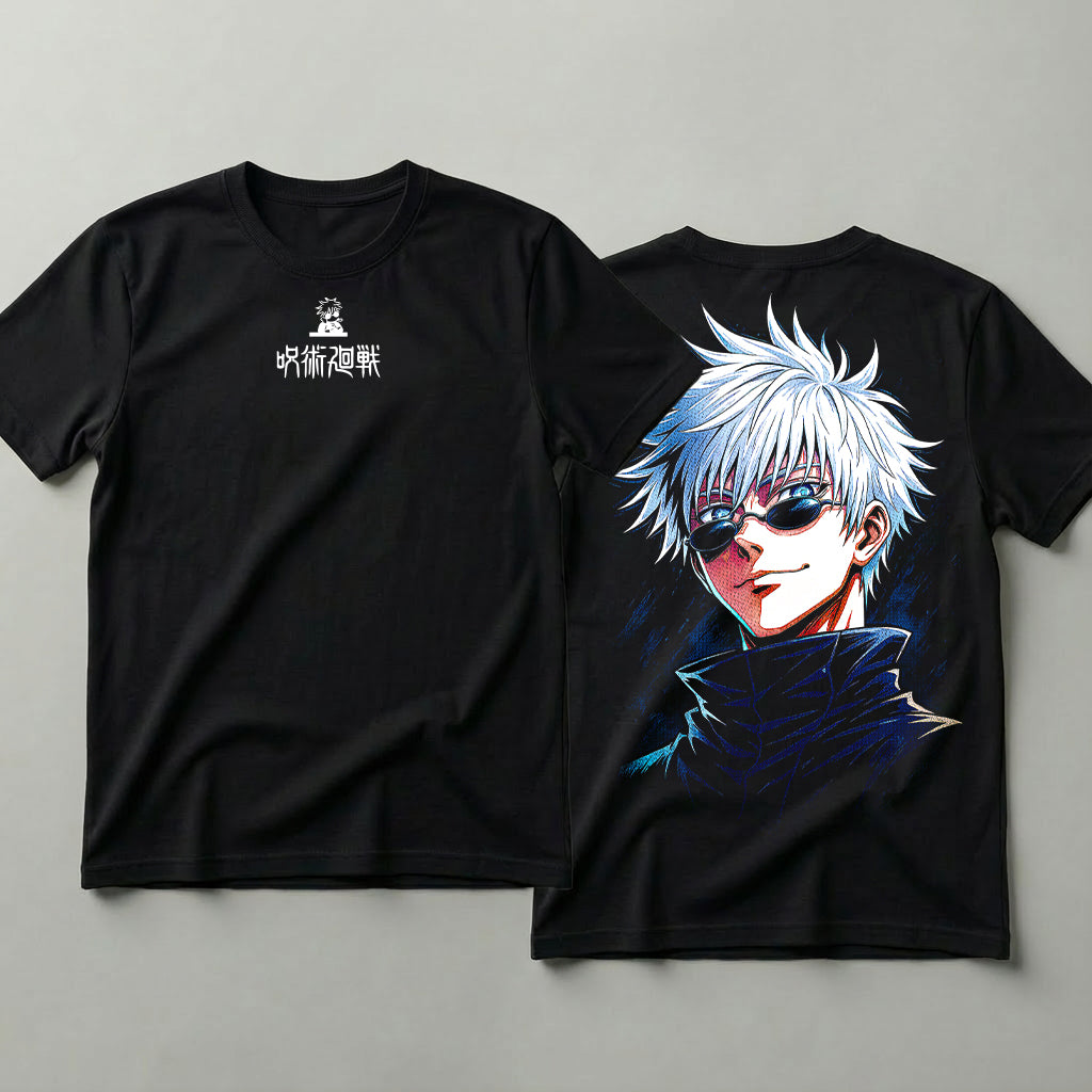 Estampa exclusiva inspirada em Gojo, com visual imponente, traços refinados e identidade marcante, aplicada em DTF de alta definição, com cores vivas e excelente fixação;