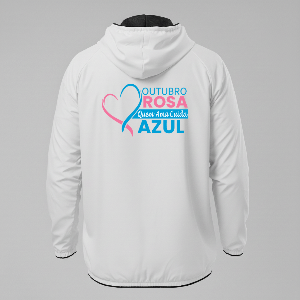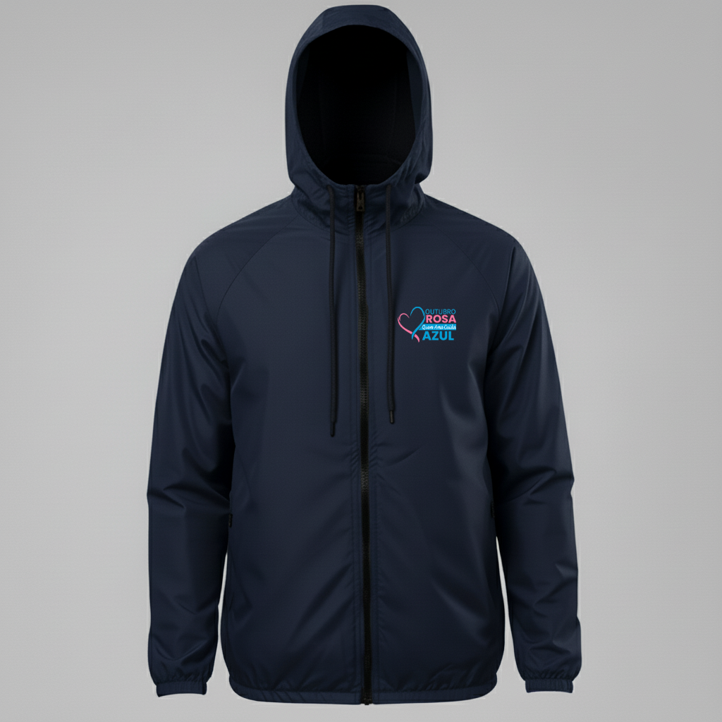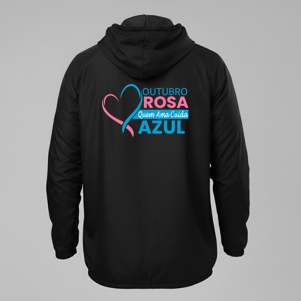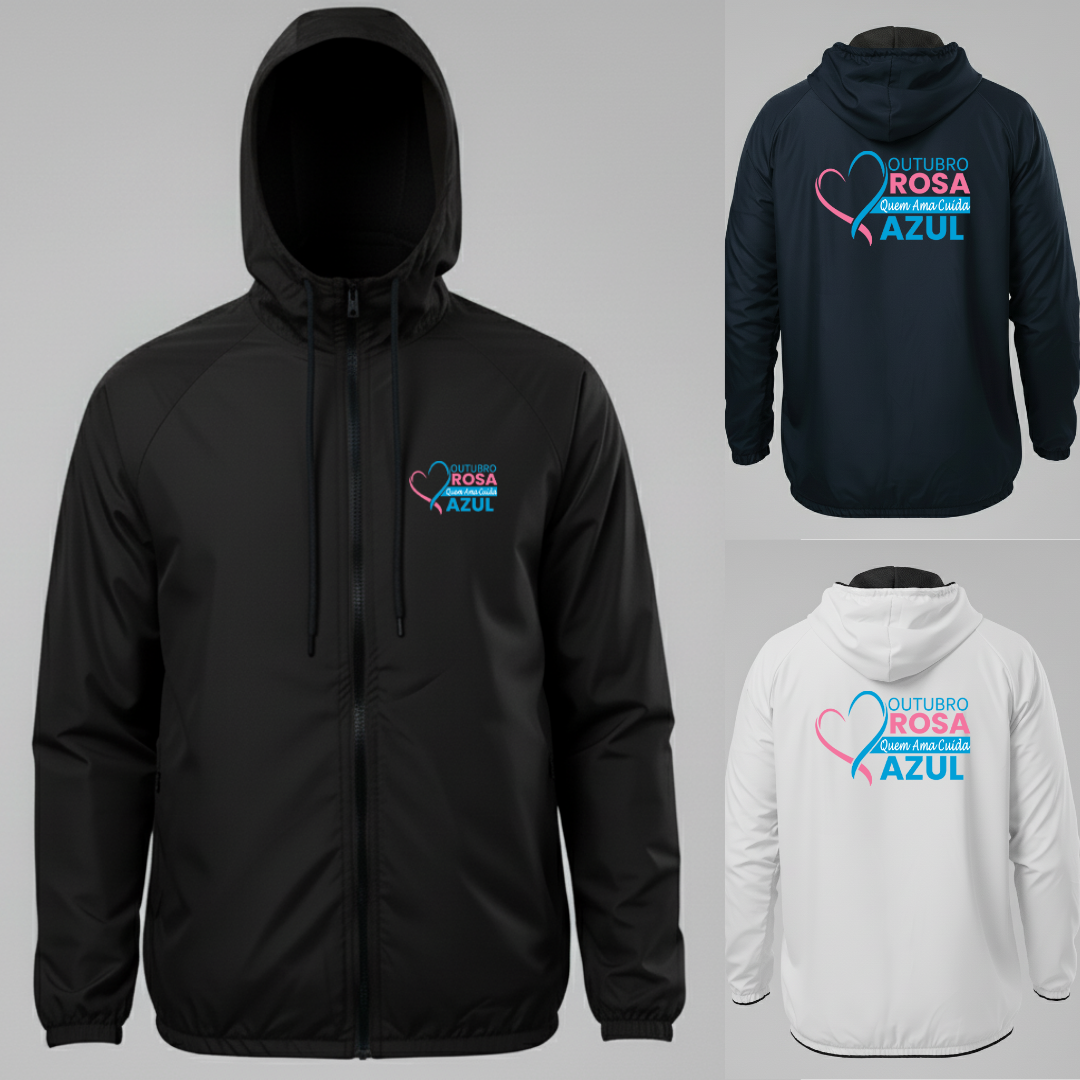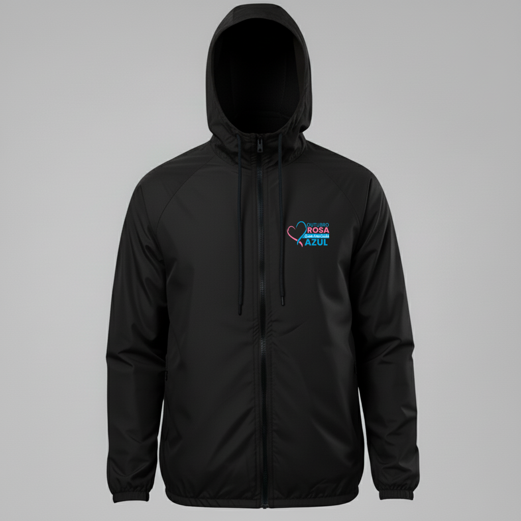A Jaqueta Corta Vento Outubro Rosa foi criada para apoiar a campanha de prevenção ao câncer de mama, combinando estilo, conforto e propósito em uma peça que inspira cuidado e empatia.