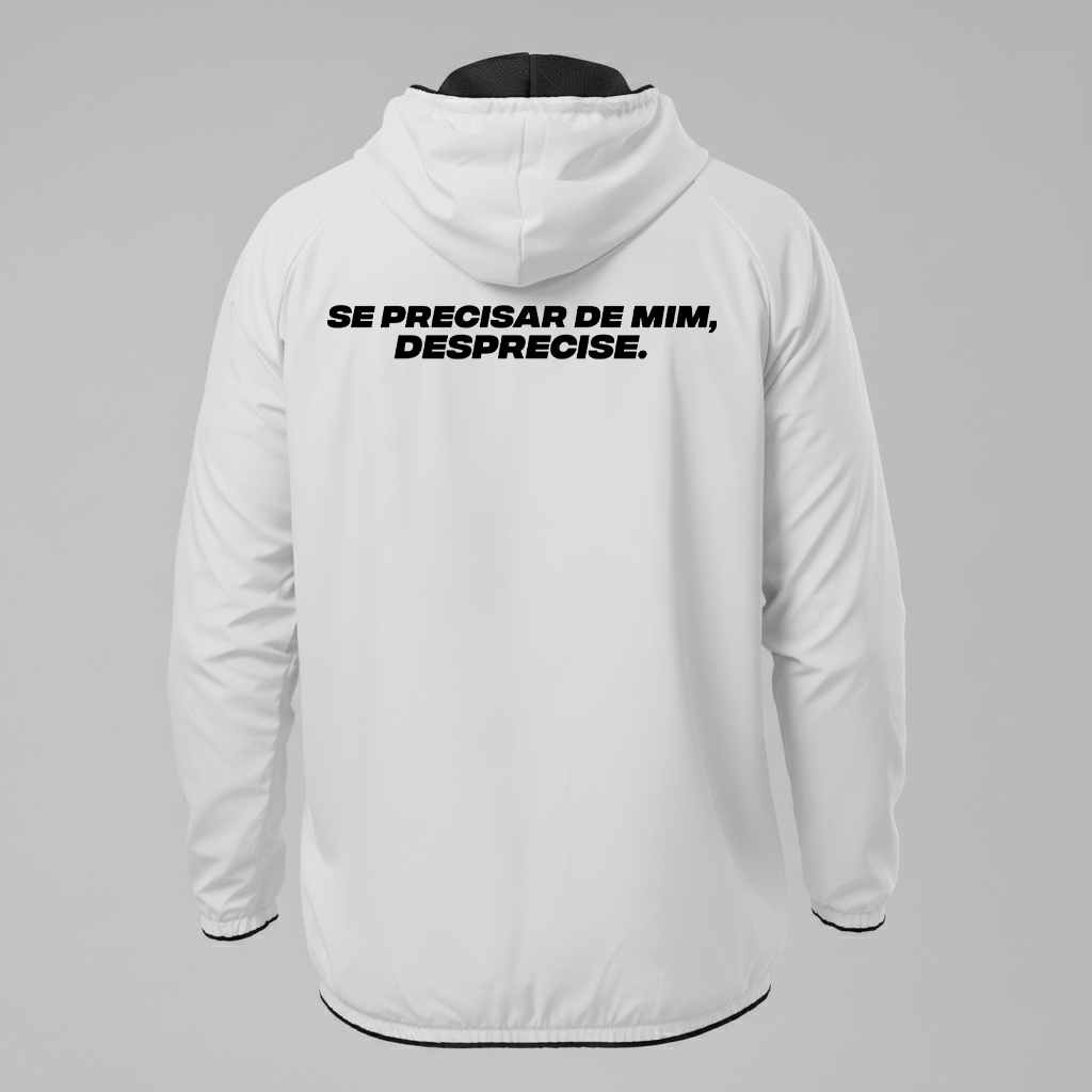 A Jaqueta Corta Vento “Se precisar de mim, desprecise” é feita para quem deseja mandar o recado com classe e sinceridade. Leve, resistente à água e cheia de personalidade, ela protege do vento — e das demandas emocionais alheias.