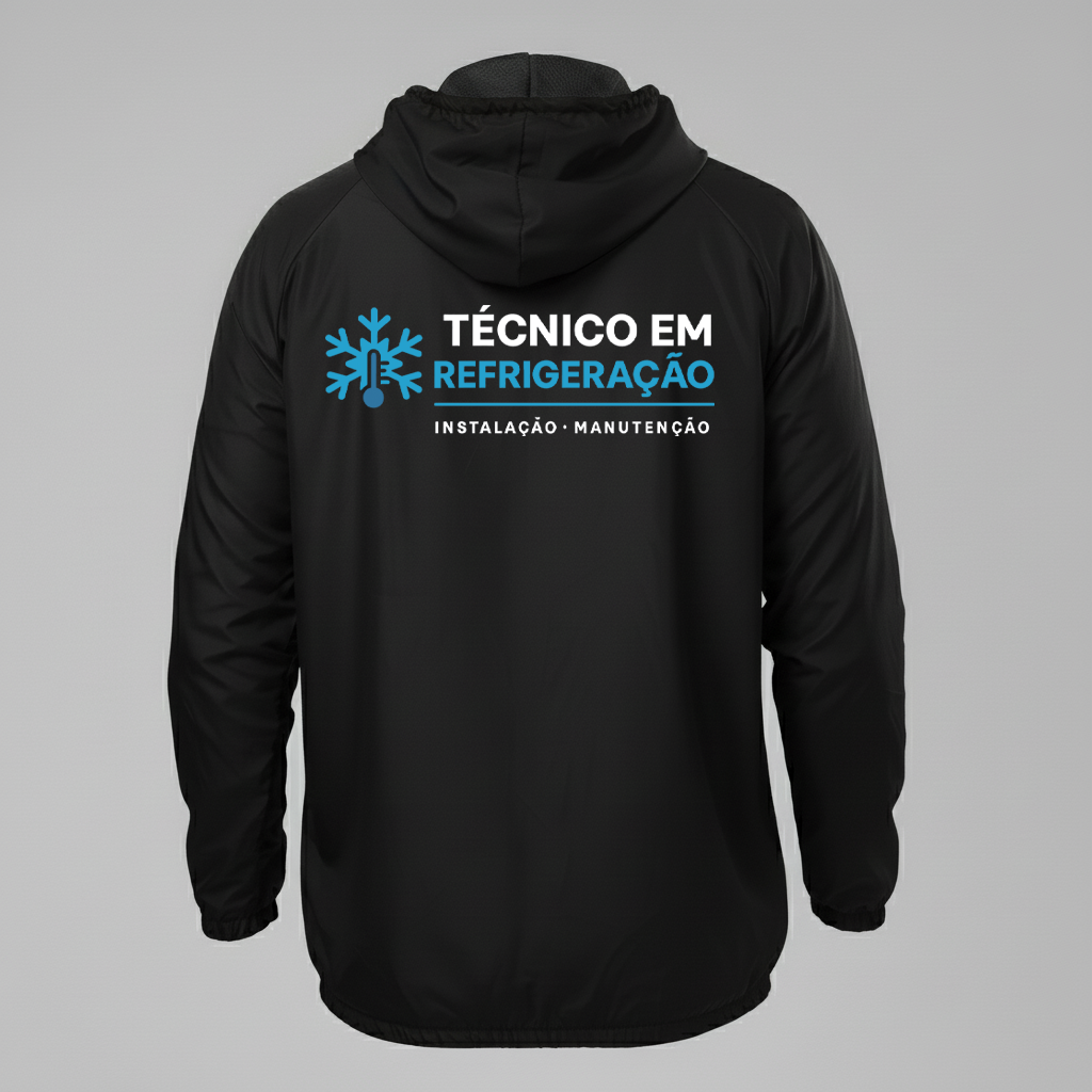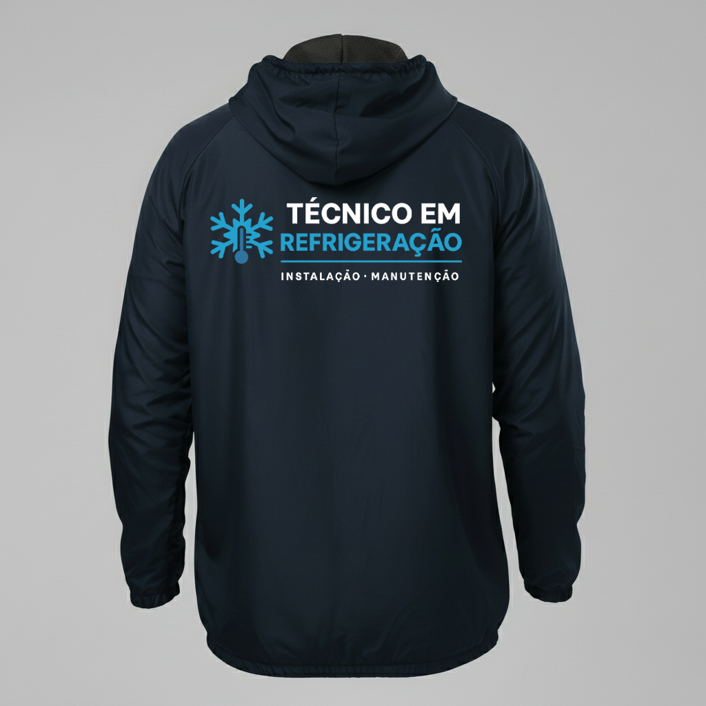 A Jaqueta Corta Vento Técnico em Refrigeração foi desenvolvida para profissionais e empresas do setor de climatização e refrigeração que precisam de proteção, praticidade e imagem profissional em qualquer condição climática. Produzida em tecido tecnológico corta vento e resistente à água, garante conforto térmico, mobilidade e durabilidade durante o trabalho em campo.